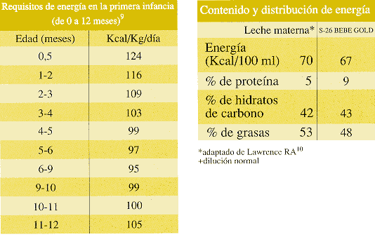 Durante sus primeros meses de vida, el lactante normal crece rápidamente. Los requisitos de energía son notablemente altos, y la acreción tisular requiere una porción considerable de esta energía. Si la energía procedente de las grasas e hidratos de carbono no es suficiente, entonces la proteína será utilizada para la energía más bien que para el crecimiento.